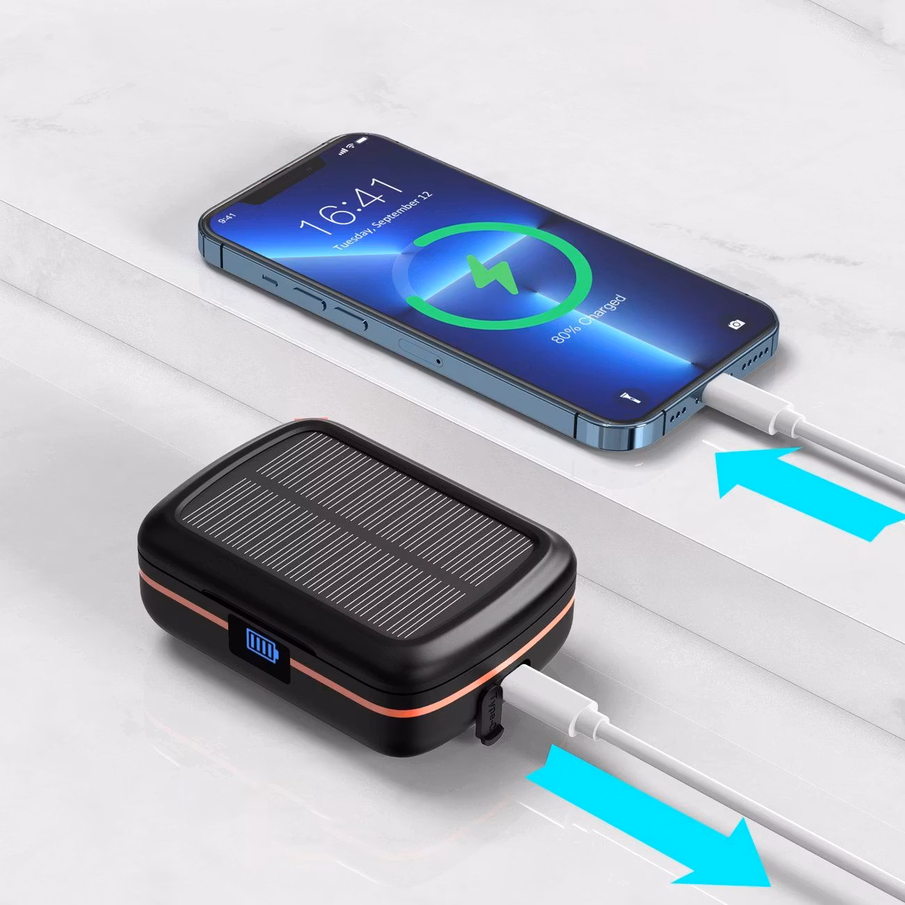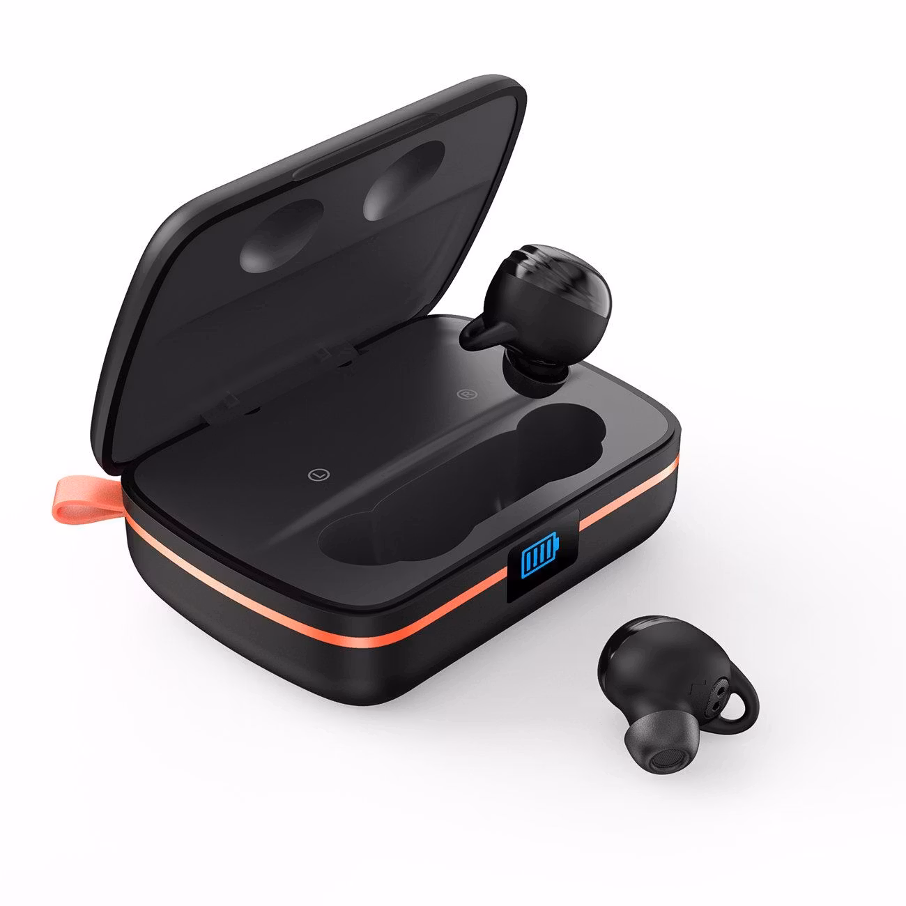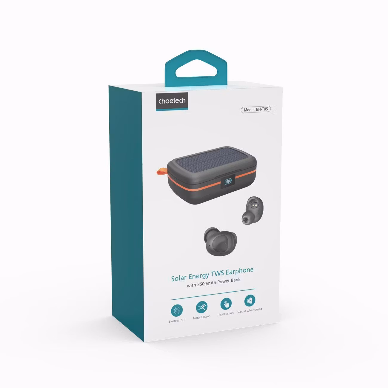 Choetech TWS trådlösa hörlurar vattentäta med solpanel och inbyggd 2500mAh powerbank svart (BH-T05)