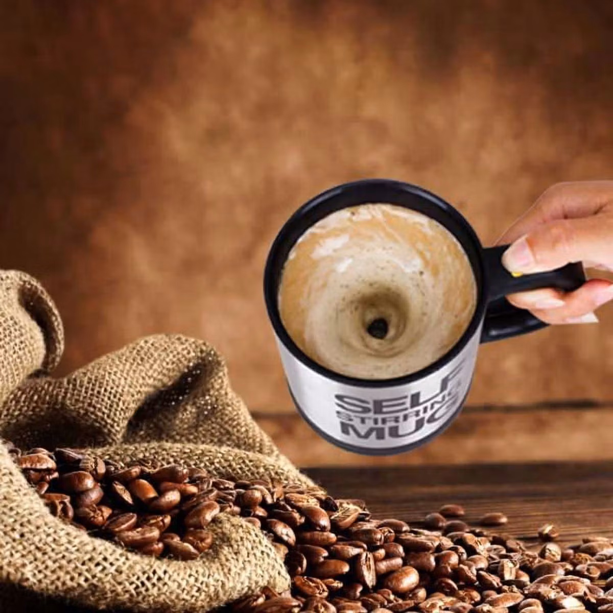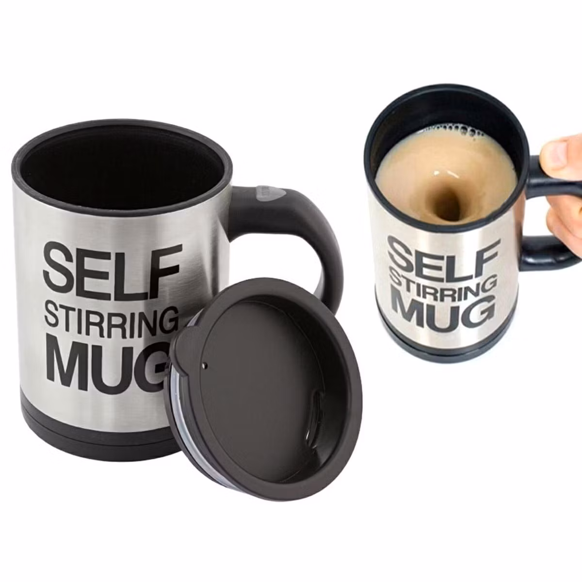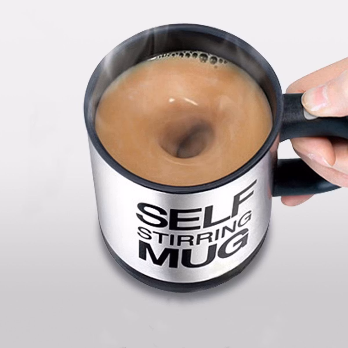 Självblandande mugg med en kapacitet på upp till 350ml utrustad med ett tätt, stängt lock. Glänsa med en ovanlig pryl bland dina vänner! En bra produkt för alla lata människor och mer. Gör att du kan dricka direkt ur koppen utan att ta bort locket tack vare den speciella öppningen. Att starta omröraren är väldigt enkelt - tryck bara på knappen på handtaget. Den självblandande koppen har ett speciellt tätt lock som förhindrar oavsiktligt spill av het vätska. Den termiska muggen låter dig hålla temperaturen på vätskan som placeras i den i upp till 3 timmar! Det är en utmärkt och mycket praktisk pryl!
