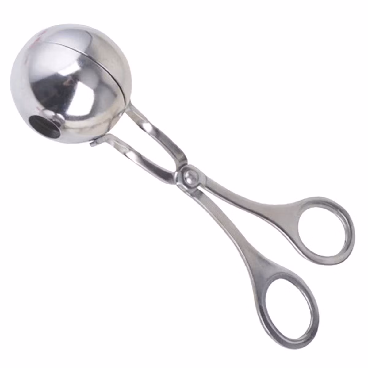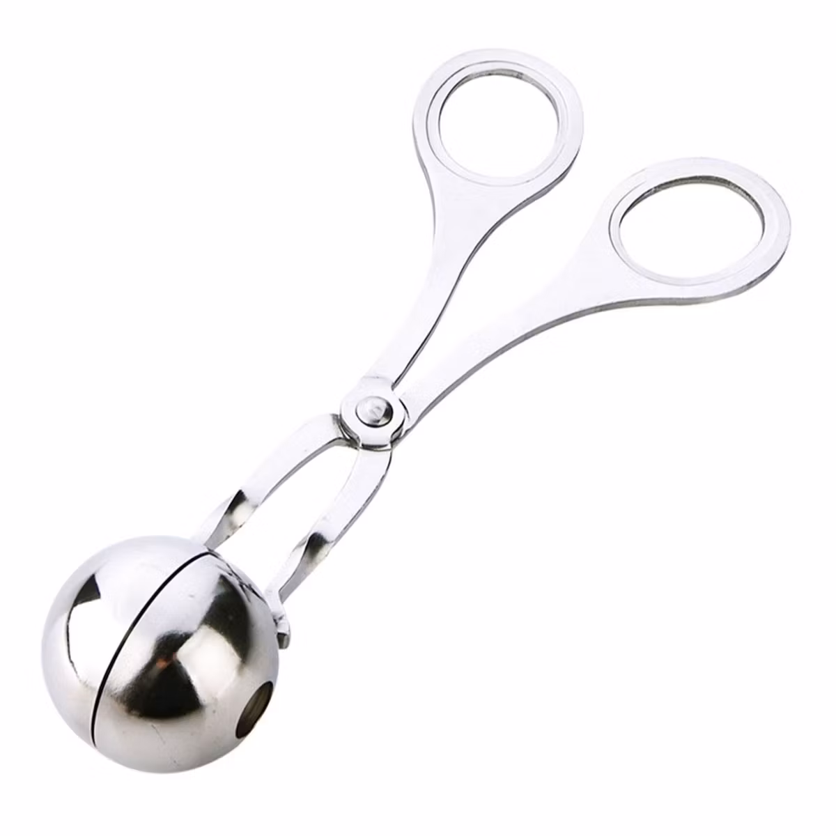 Praktisk tång för att forma köttbullar etc. Det långa handtaget i form av sax underlättar exakt lösning och formning av köttfärs. Två hål i formen gör att överflödigt kött kan rinna ut vid pressning. Du kan laga läckra köttbullar på ett snabbt och enkelt sätt.
