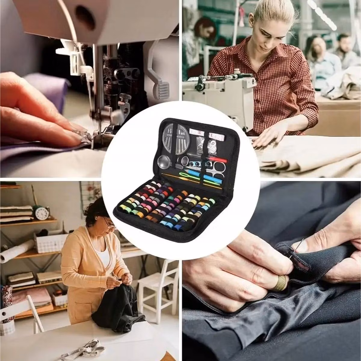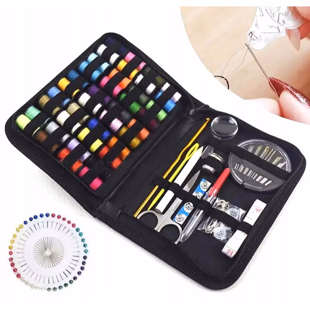 - En mängd extra tillbehör (t.ex. säkerhetsnålar, sax, en fingerborg eller ett mått).