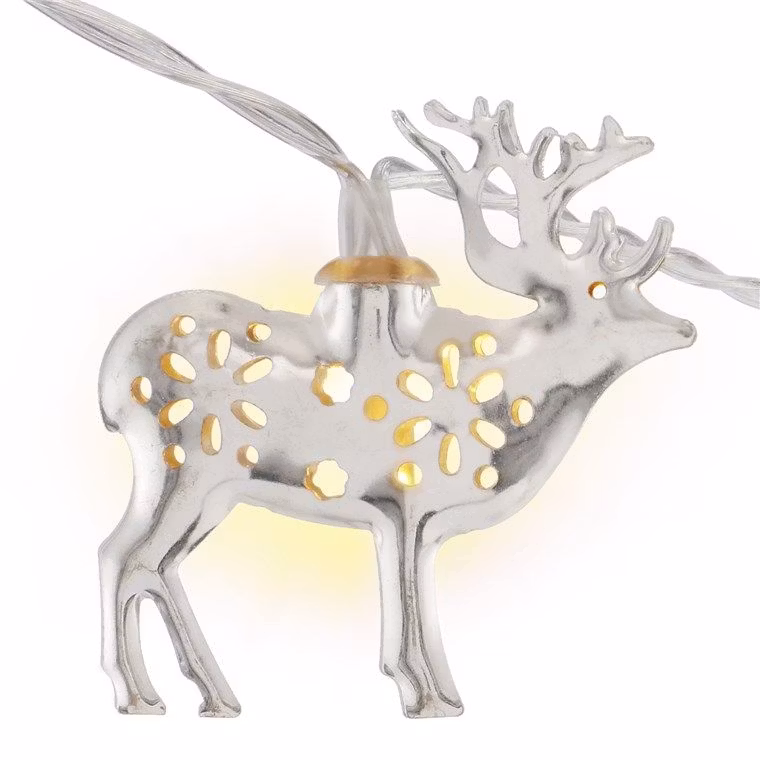 Med timerfunktion, varmvit (3000 K), batteridriven. Med timerfunktion - 6 timmar på / 18 timmar av, omkopplare med 3 lägen - ON / OFF / timer. Total längd 130 cm, bly 40 cm, avstånd mellan lysdioderna 10 cm, transparent kabel. Batteridriven (2 x AA, ingår ej). IP20 - för inomhusbruk. Hängen i metall, silver, ca. 5,3 x 5,5 x 1 cm, vintage -look - på grund av den lilla mängden silver i metallen kan oxidation leda till mörk missfärgning av hänget. Tydliga linjer, speglad yta och upplyst från insidan - elegant dekoration för vinter- och juldagar. De 10 lysdioderna skapar stämningsfulla ljus accenter på fönster och juldekorationer genom renens reflekterande ytor.