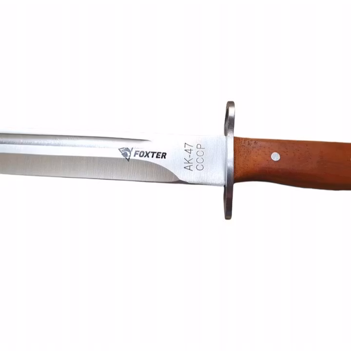 Upptäck vår imponerande militärkniv, en exakt kopia av den klassiska sovjetiska bajonetten till AK-47 "Kalashnikov". Tillverkad av högkvalitativa material och designad för långvarig användning, med ett ergonomiskt handtag av rostfritt stål och träelement som ger ett säkert grepp.