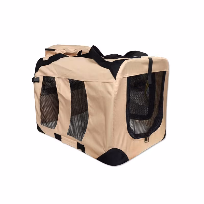 Djurbox för husdjur som hundar, men även katter, kaniner. Totalt 3 dragkedjor, 2 på sidorna, en på toppen. Boxen har olika remmar, handtag och bältesmöjligheter för bilar. En avtagbar väska i samma färg kompletterar erbjudandet. Där stuvar du till exempel lite mat eller små leksaker till resan. Boxen är hopfällbar och sparar utrymme när den inte används. Det speciella är den mjuka komfortmattan, så att husdjuret mår bra. Produkten är avtagbar från metallramen och tvättbar.